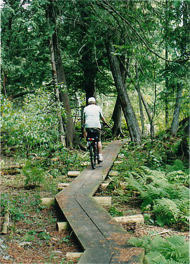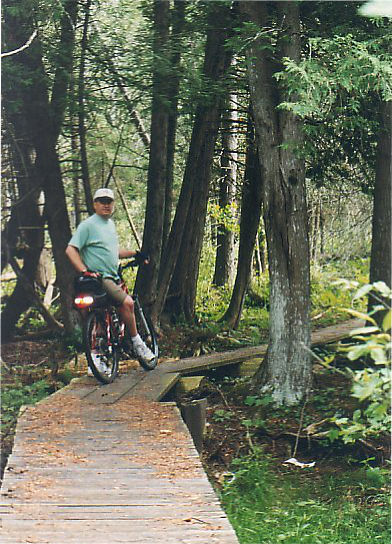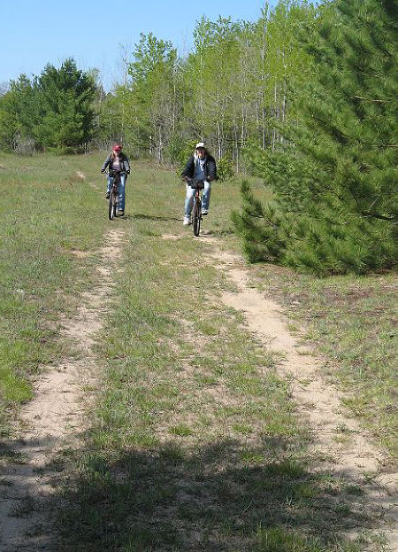Biking in the Pigeon River Country can be quite an interesting experience. The Shingle Mill Pathway has a number of loops that will take you back to your starting point ranging from several miles to 11 miles in length with elevations from 900 to 1100 feet above sea level. Lakes, rivers, sinkholes and all types of wildlife await the ambitious rider. The trail ranges from hard packed to loose sand to man-made wooden planks! The Shingle Mill can be quite challenging in places, but also crosses several roads so short cuts back to camp are usually possible!